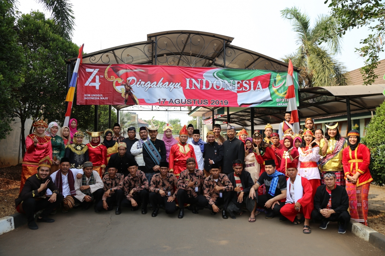 Jakarta, BP3TKI Jakarta, Sabtu (17/08) – Ada warna berbeda pada upacara Hari Ulang Tahun Kemerdekaan Republik Indonesia ke 74, seluruh pegawai BP3TKI Jakarta melaksanakan upacara dengan berbalut busana daerah dari Sabang sampai Merauke di Halaman Kantor BP3TKI Jakarta, Jalan Penganten Ali No.71 Ciracas Jakarta Timur.