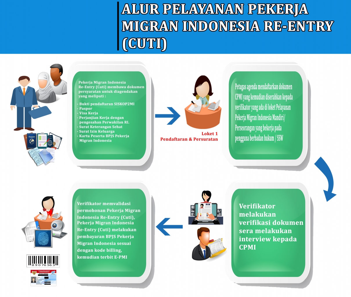 Lama waktu pelayanan 30 menit *Syarat dan ketentuan : semua dokumen PMI lengkap dan sesuai persyaratan serta SISKOP2MI serta sistem BPJS dan perbankan dalam kondisi normal/tidak off LINE